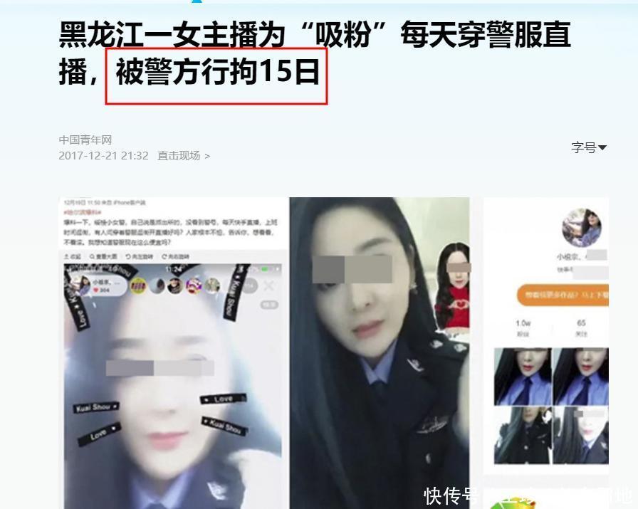 根据公开资料可知,2017年,黑龙江有一位女主播每天穿警服直播,最后该女主播被网友举报,该女主播被抓之后被行拘了15天。